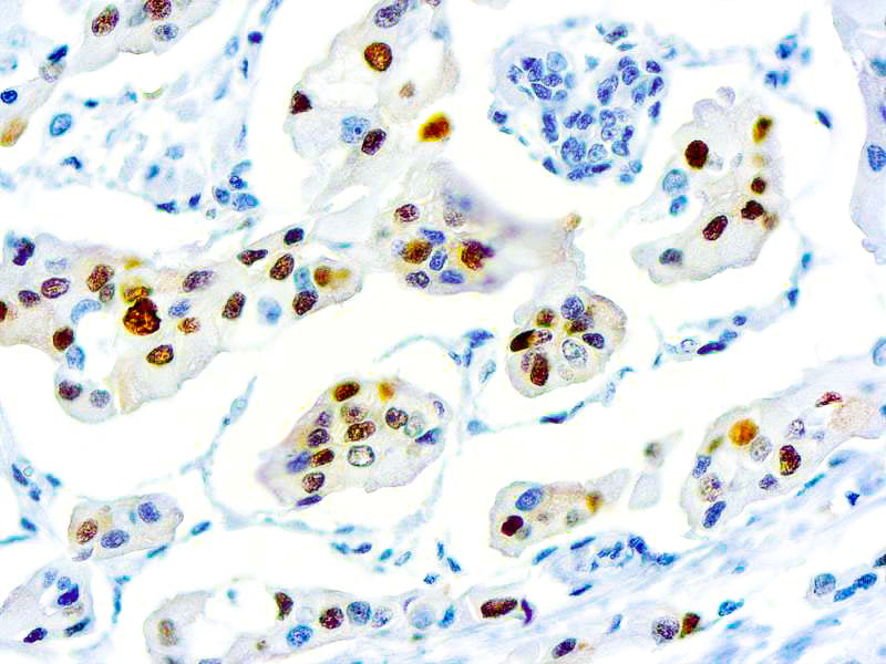 Cyclin D1 belongs to the Cyclin D family. Cyclin D1 is required for the cell cycle G1/S transition. Amplification or overexpression of Cyclin D1 plays a pivotal role in the development of various human cancers including breast cancer, colon cancer, melanoma, prostate cancer and lymphoma. It is useful to differentiate mantle cell lymphoma from small cleaved cell lymphoma. Rabbit monoclonal antibodies to Cyclin D1 showed the highest sensitivity to detect this antigen in formalin fixed paraffin embedded tissue as compared to several other clones.