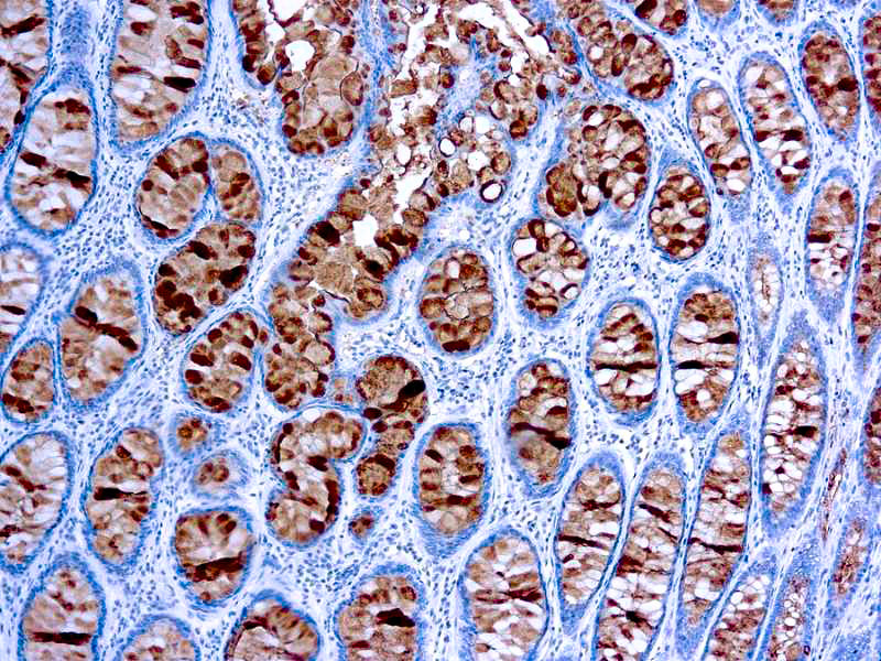 This antibody reacts specifically with sialyl Lewisa and recognizes an epitope being designated CA 19-9. It does not cross-reacts with Lewisa and Lewisb. CA 19-9 has been shown to be useful marker in the diagnosis and management of gastrointestinal cancers.