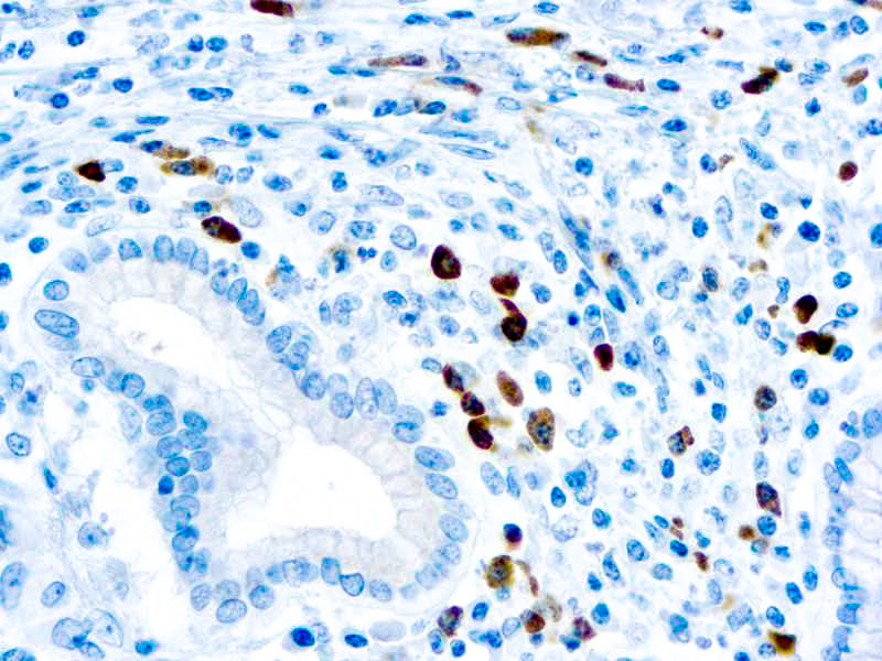 This antibody does not show any cross-reactivity with kappa light chain. It stains B cell follicles in human lymphoid tissues. The mantle zone shows a mosaic pattern of labeling while the germinal centers show a coarse meshwork pattern of staining.