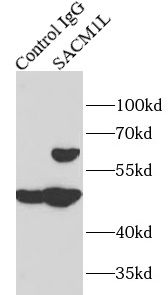 IP result of SACM1L antibody(IP: FNab07576, 3μg; Detection: FNab07576, 1:1000) with mouse kidney tissue lysate 3000μg.